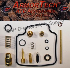 Here's a NEW, top quality Armor Tech carburetor rebuild kit with precision machined components for the 1990-1996 Suzuki LT 4WD Quadrunner. This also fits the 1990-1996 Suzuki LTF250 Quadrunner. Don't waste your time rebuilding your old carb with cheap quality, inferior parts. Rebuild it right the first time with this quality kit and get your old atc screaming again!! The kit includes all gaskets, o-rings, springs, main jet, slow jet, float needle etc for a complete carburetor rebuild as shown in the photo above.