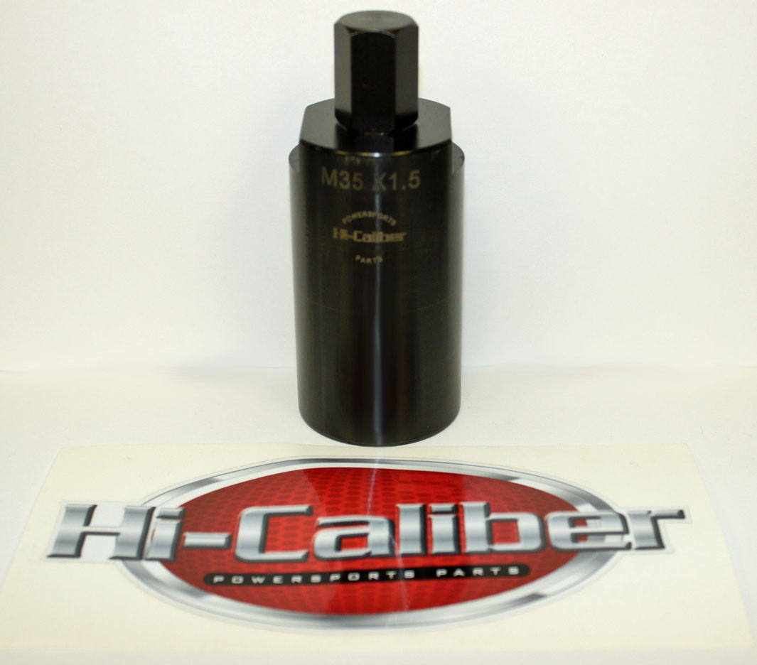 This 35mm x 1.5 right hand internal thread (female) deep flywheel puller by Hi-Caliber Powersports Parts, working on the models listed above. If you need the 1" shallow depth 35mm x 1.5 right hand flywheel puller, please look for it in our selection. A necessary tool for removing the flywheel when servicing the magneto/stator assembly. This flywheel puller is constructed of 100% top quality cold rolled carbon steel, with a hardness of HRC 37. This high quality, heat treated steel ensures lasting durability and strength for repeated use. The tool features a durable, black oxide finish and is laser etched with the size and logo for easy identification.