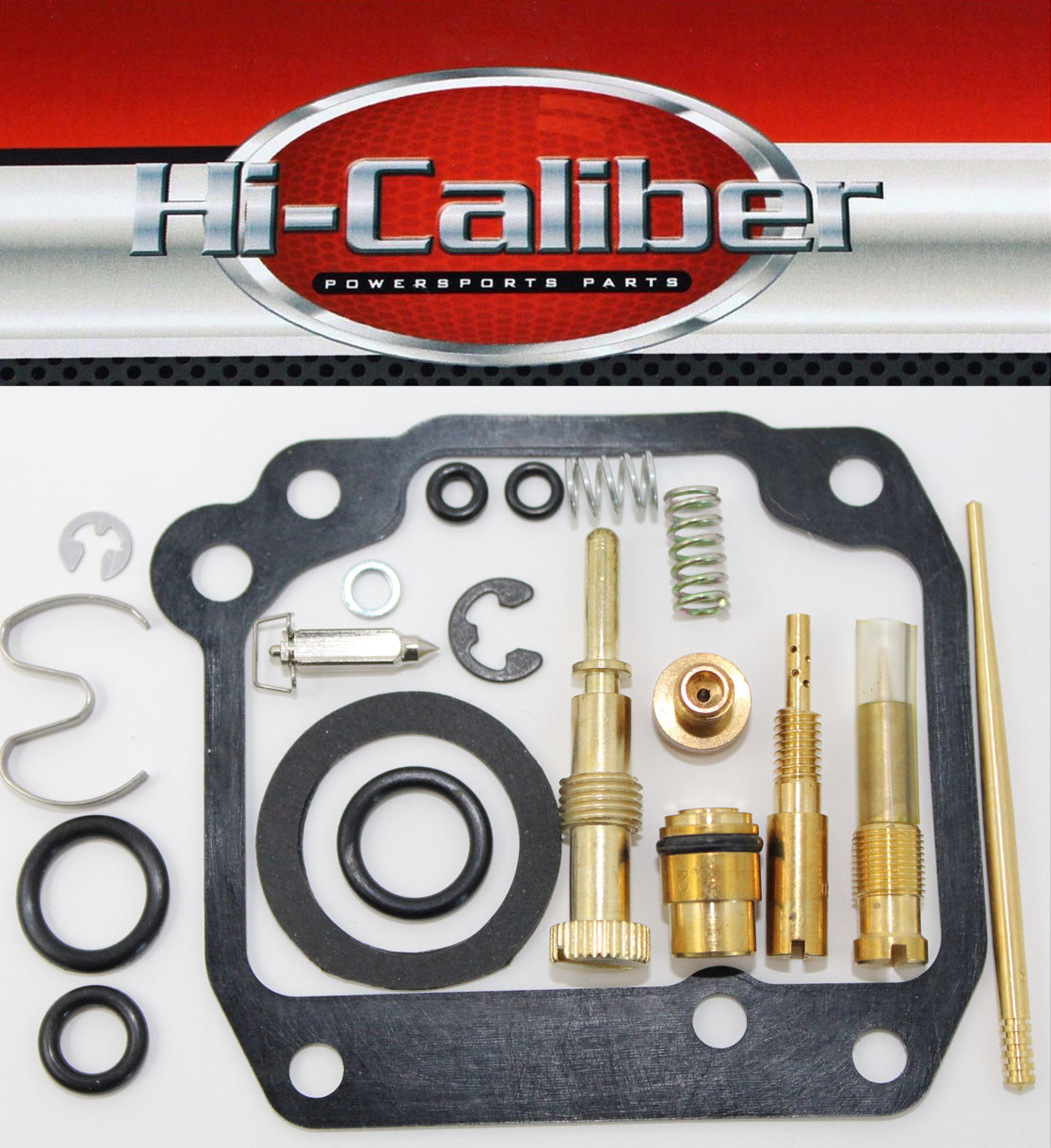 Here's another quality product you've come to expect from Hi-Caliber Powersports Parts. Don't waste your time rebuilding your old carb with cheap quality, inferior parts. Rebuild it right the first time with this quality kit and get your old atc screaming again. The kit includes all gaskets, o-rings, springs, main jet, slow jet, float needle etc for a complete carburetor rebuild as shown in the photo above.